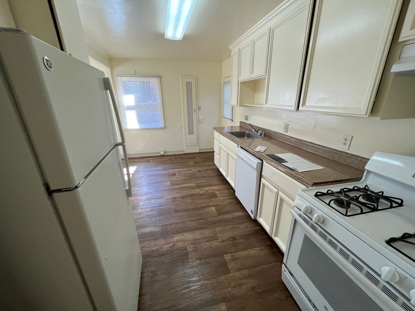 Walking into the kitchen on your left, you will also see a nice sized dining nook. The kitchen features all the appliance essentials such as the Refrigerator, Gas Stove, and Dishwasher. The small dining area which can serve as the perfect location to enjoy your breakfast and browse the internet.