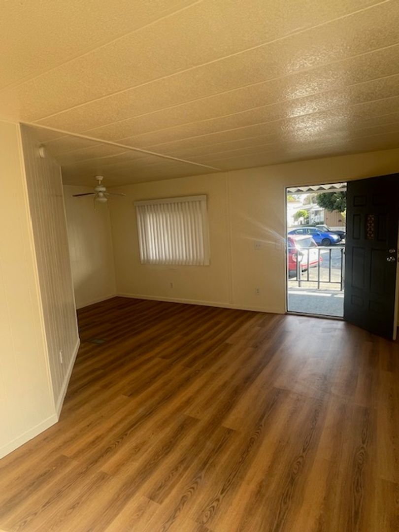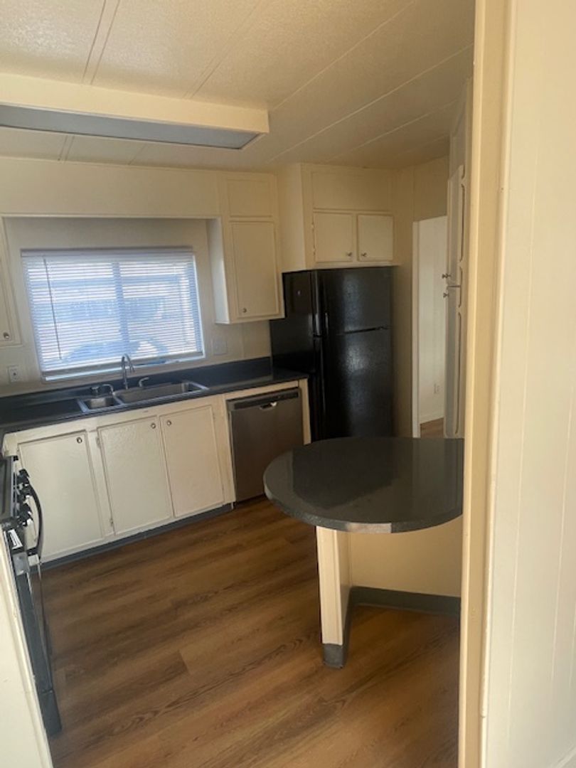 Nice 2/2 with 800 sf, quiet shady patio, new floors, counters, and appliances. Large front living and dining area. Parking right outside your door and mail delivered directly to your home. Excellent Sunnyvale Schools, extremely convenient with tech campuses, all the major freeways, food and entertainment, all a mere 5 minutes away. Come tour one of manufactured homes today.